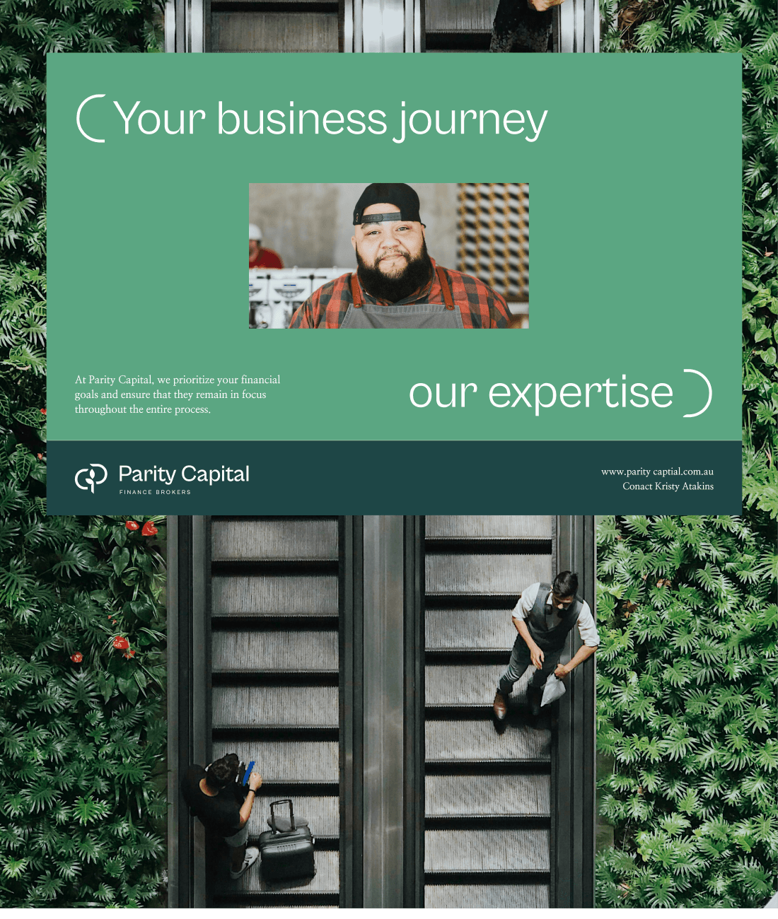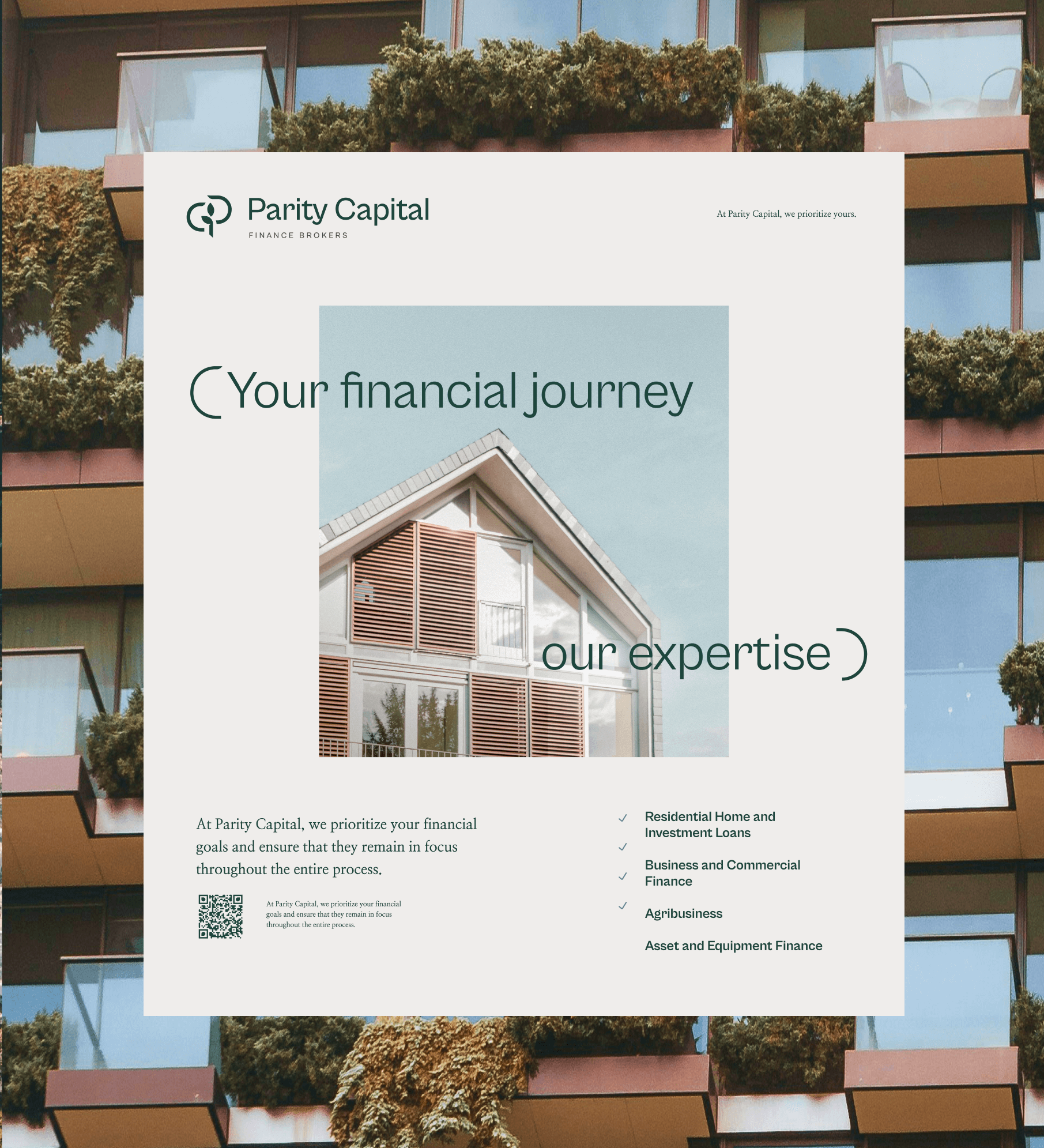 Parity means 'state of being equal'. Not only does this reflect the nature of the relationship between broker and customer, it suggests the equality of women in finance. In the brand, I wanted to depict a balance between both parties and allowing the relationship and/or assets to grow.